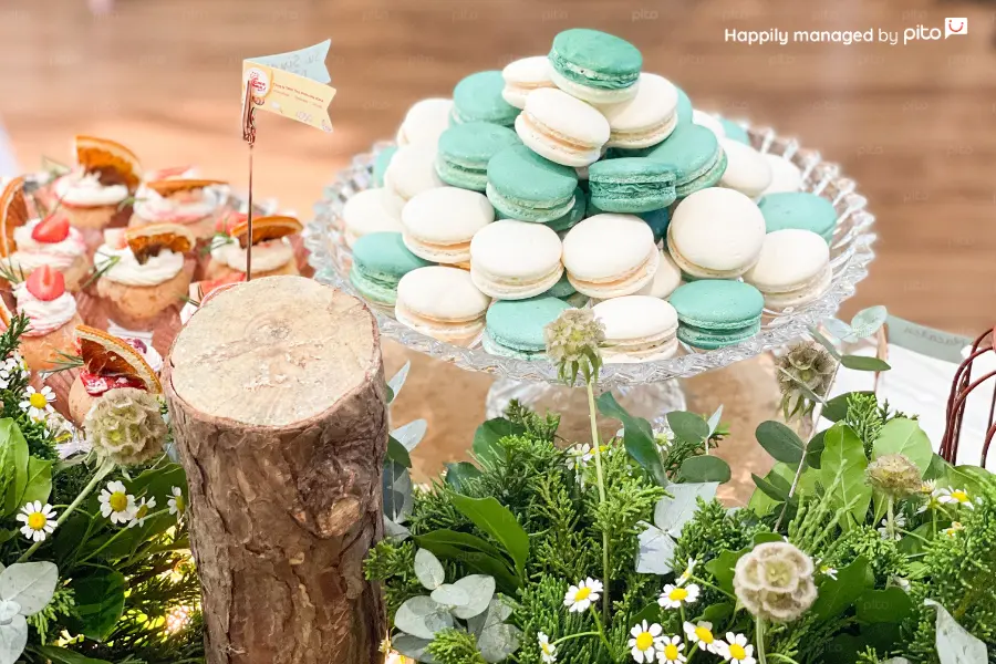 Có. Từ menu, backdrop, welcome board, đến vật dụng trang trí đều có thể tuỳ chỉnh theo bộ nhận diện riêng.