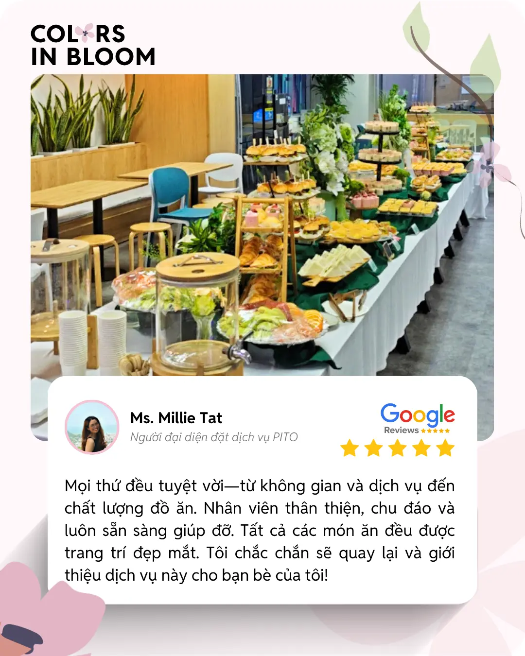 Từ setup không gian, thực đơn, đến hoạt động – PITO mang đến trọn gói dịch vụ, để doanh nghiệp chỉ cần tận hưởng khoảnh khắc “nở hoa” của mình.