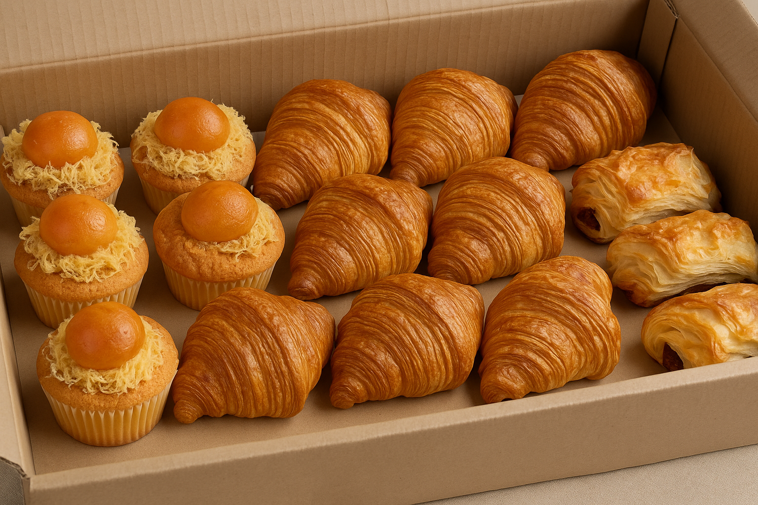 Box Bông Lan Trứng Muối Cupcake + Bánh Táo + Croissant Plain Truyền Thống