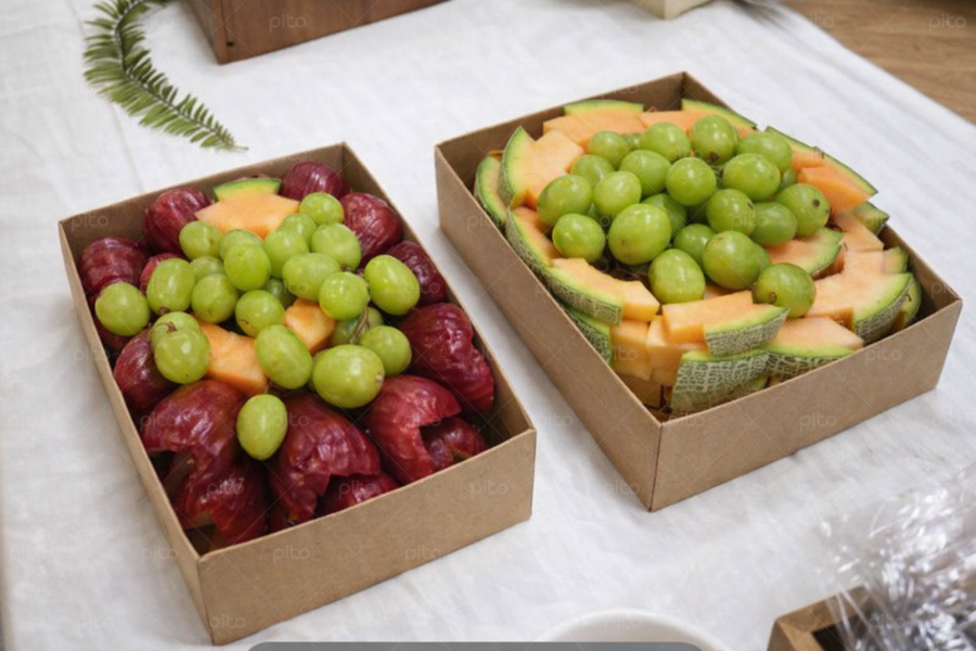 Gồm 4 loại trái cây tự chọn, được cắt sẵn trình bày trong hộp nhựa hoặc hộp giấy